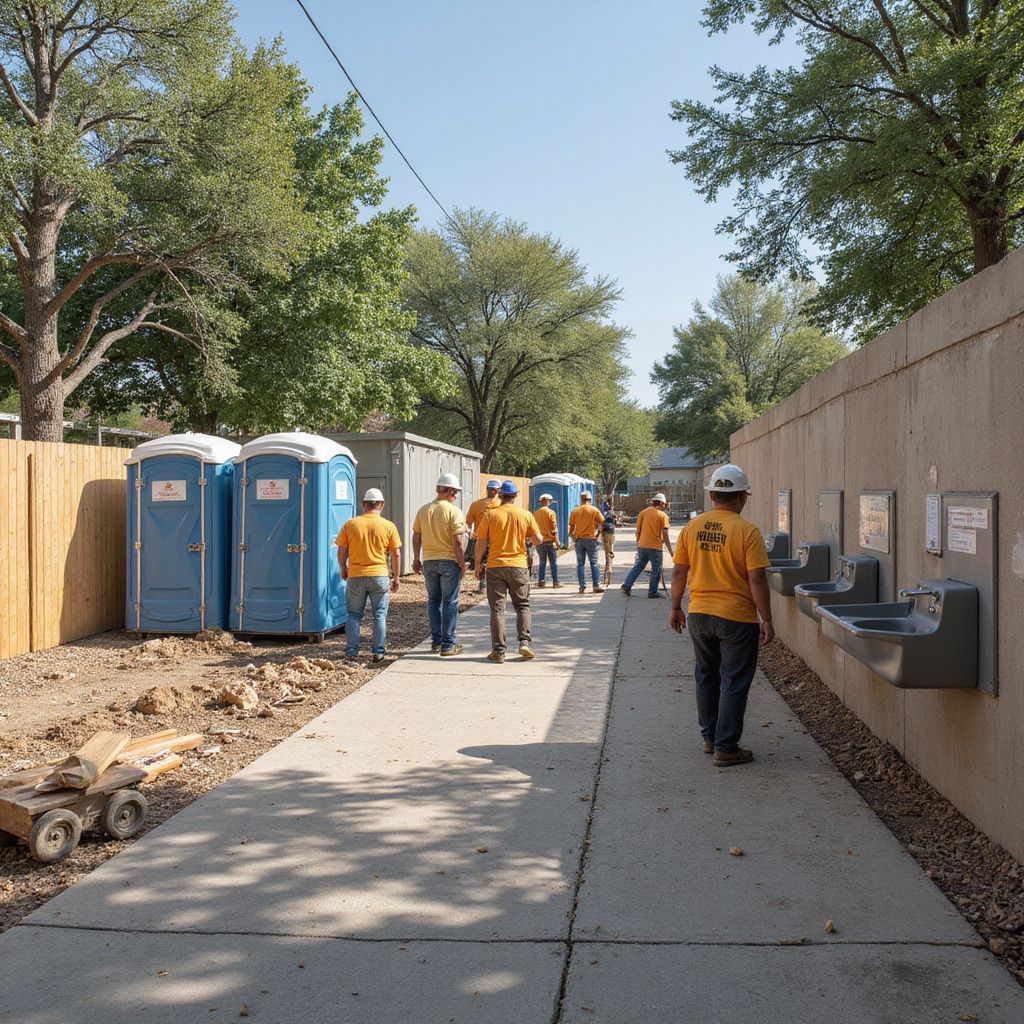Supply and installation of temporary security fencing with privacy options, barricades, porta-potties, and hand washing stations to maintain safe and compliant work environments.